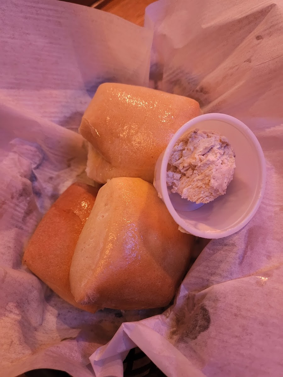 This location is very popular, as it always appears to be busy. Good place to get a steak meal at a reasonable price. The rolls with cinnamon butter were so delicious that I asked for seconds. I ordered a 6 oz sirloin with French fries and a Caesar salad. The French fries and steak were good, however the Caesar could have been better. The croutons sparse and overly toasted and I would have preferred more cheese. The service was great. The server was very attentive. The staff performs a line dance at the top of the hour.